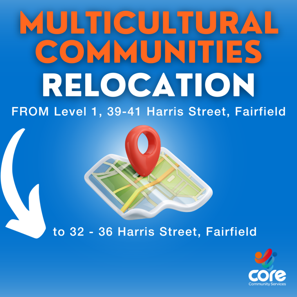 CORE Community Services, Multicultural Communities located at level 1, 39-41 Harris Street will be relocating to CORE Community Services, 32-36 Harris Street, Fairfield (across the road).